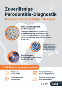 Entdecken Sie unseren neuen ParodontitisPlus DNA-Array – das innovative IVD-Kit zur zuverlässigen Identifizierung parodontalpathogener Keime und Interleukin-1.