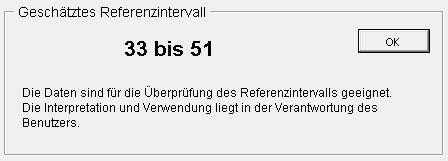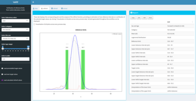 Output: Verified or estimated reference limits, respectively, with graphical output and status indicators